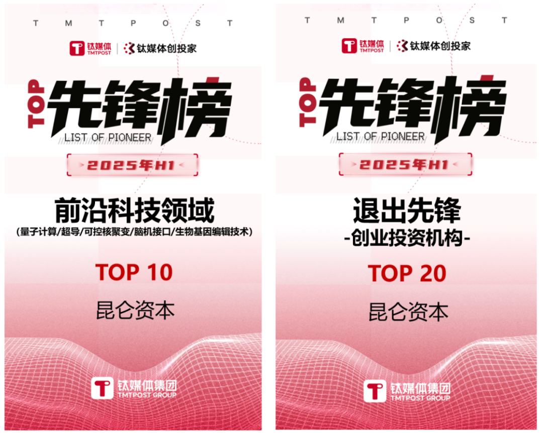 钛媒体「2025年H1前沿科技领域投资机构TOP10」奖项、