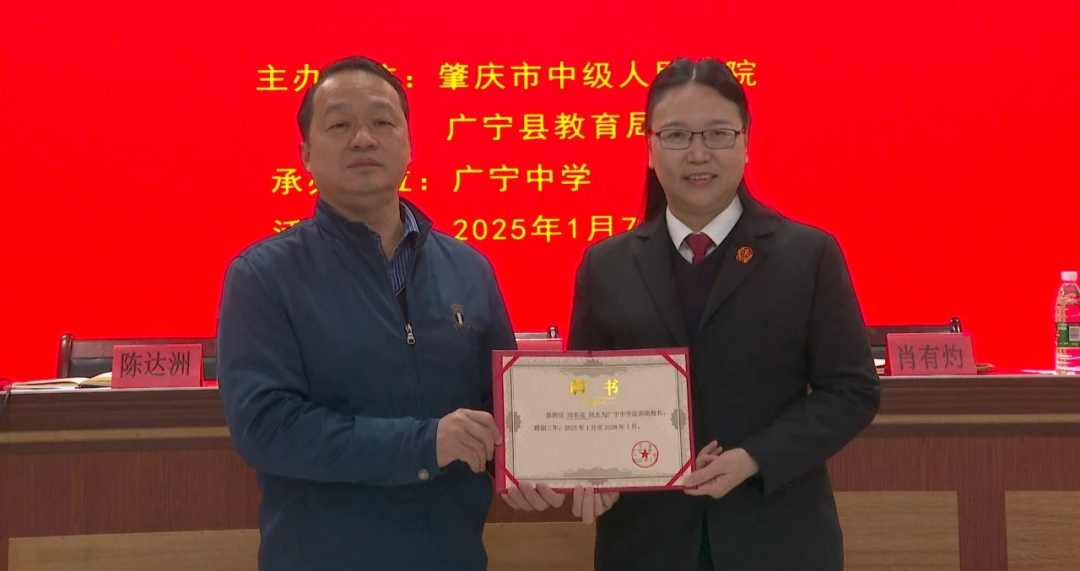 1月7日赌钱赚钱app,广宁中学举行法治副校长聘用庆典,肇庆市中级东谈主民法院党构成员、政事处主任邱杏花聘用为广宁中学法治副校长。