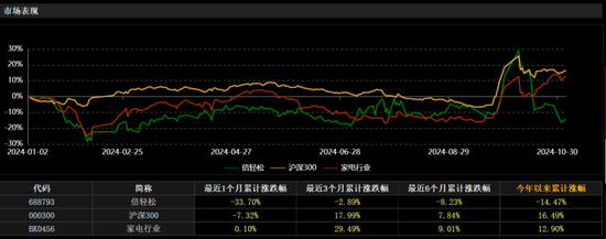 把柄Choice数据袒露,本年以来,沪深300指数和家电行业的累计涨幅分离为16.49%和12.90%,干系词倍鄙俗的股价却累计着落14.47%。相配是在曩昔一个月,倍鄙俗股价暴跌进步30%,与合座行业走势酿成显著对比。